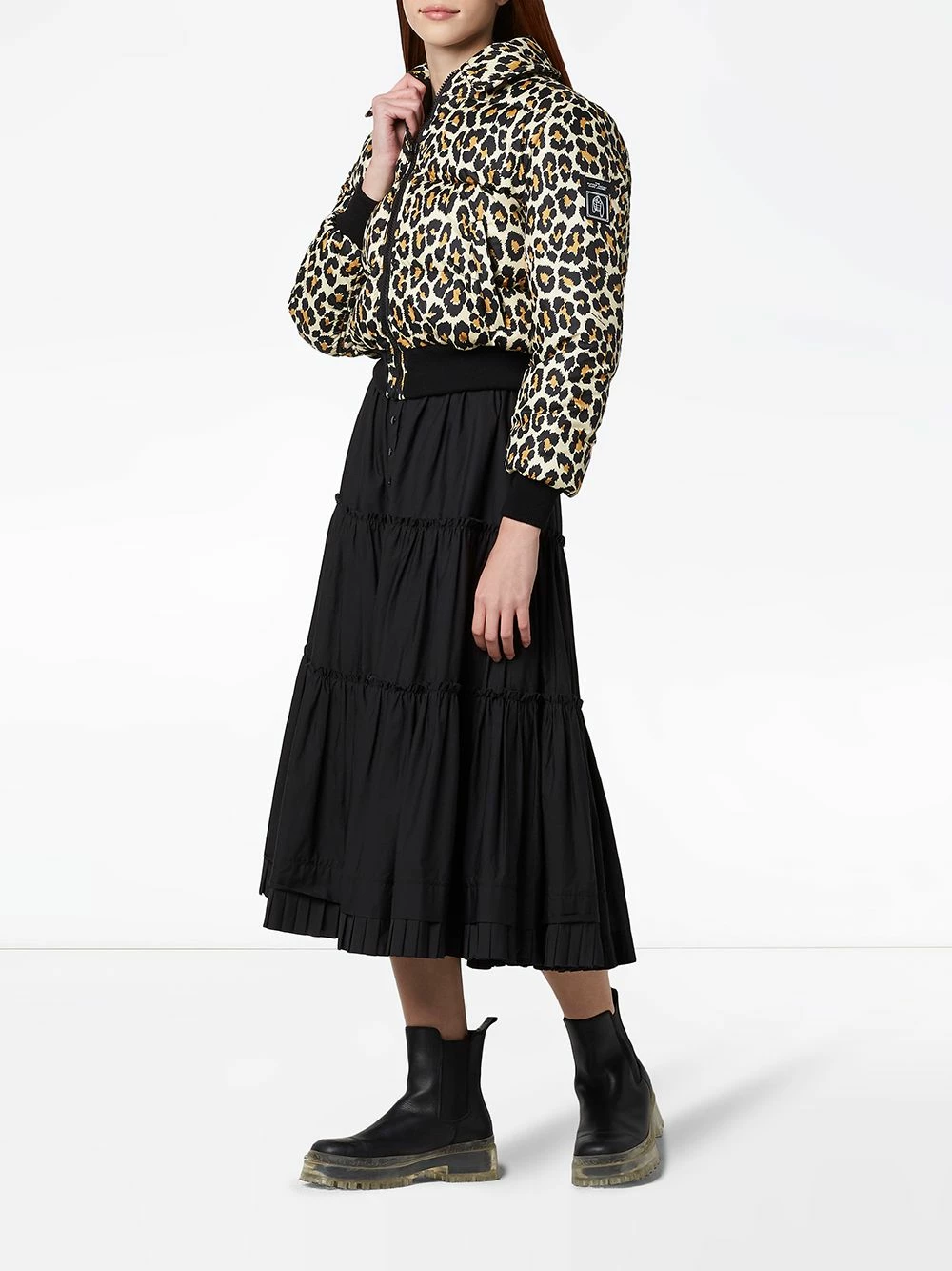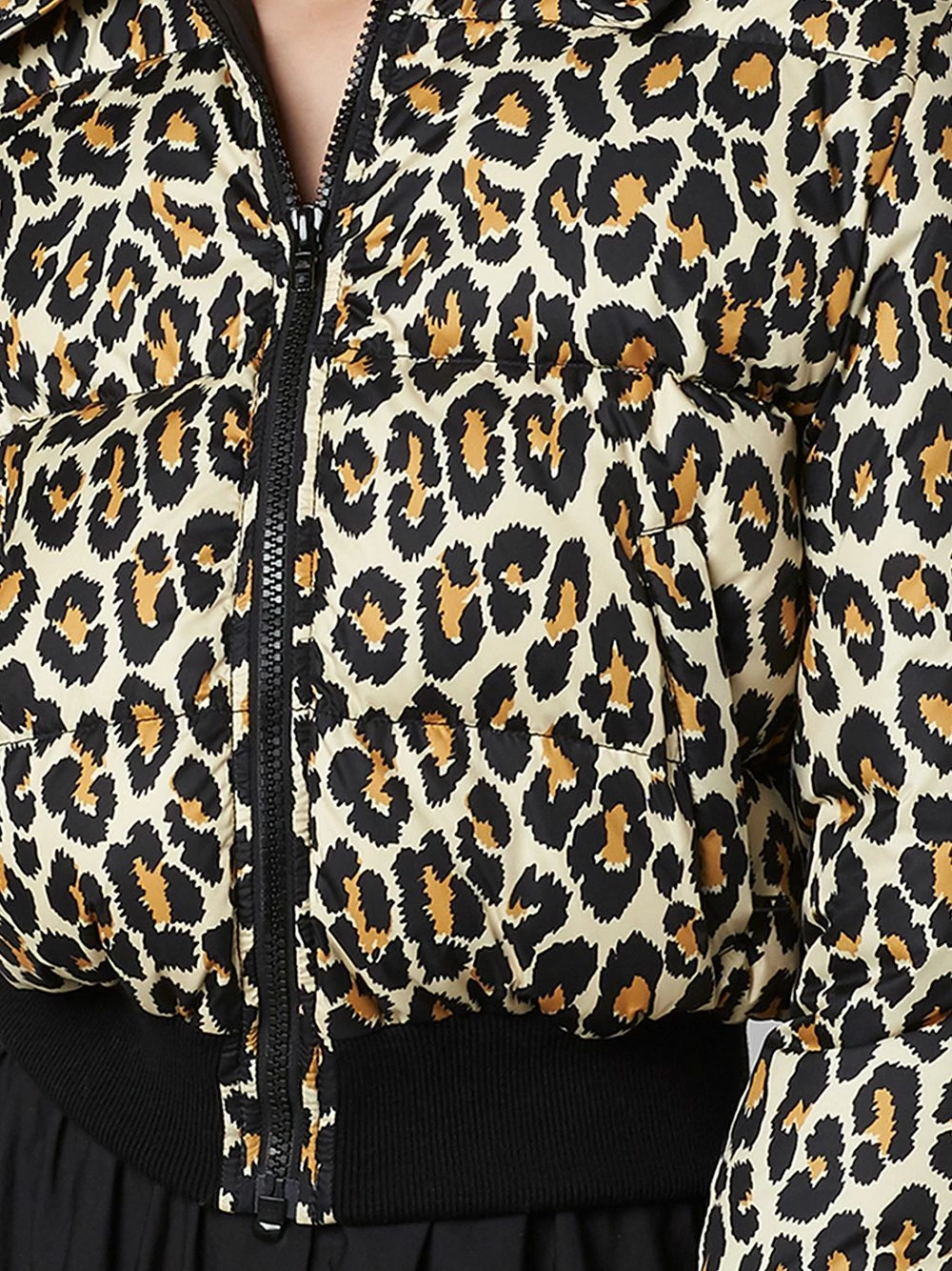 Design matelassé, imprimé léopard, détail nervuré, fermeture zippée devant, manches longues, deux poches passepoilées avant. Couleur : marron.