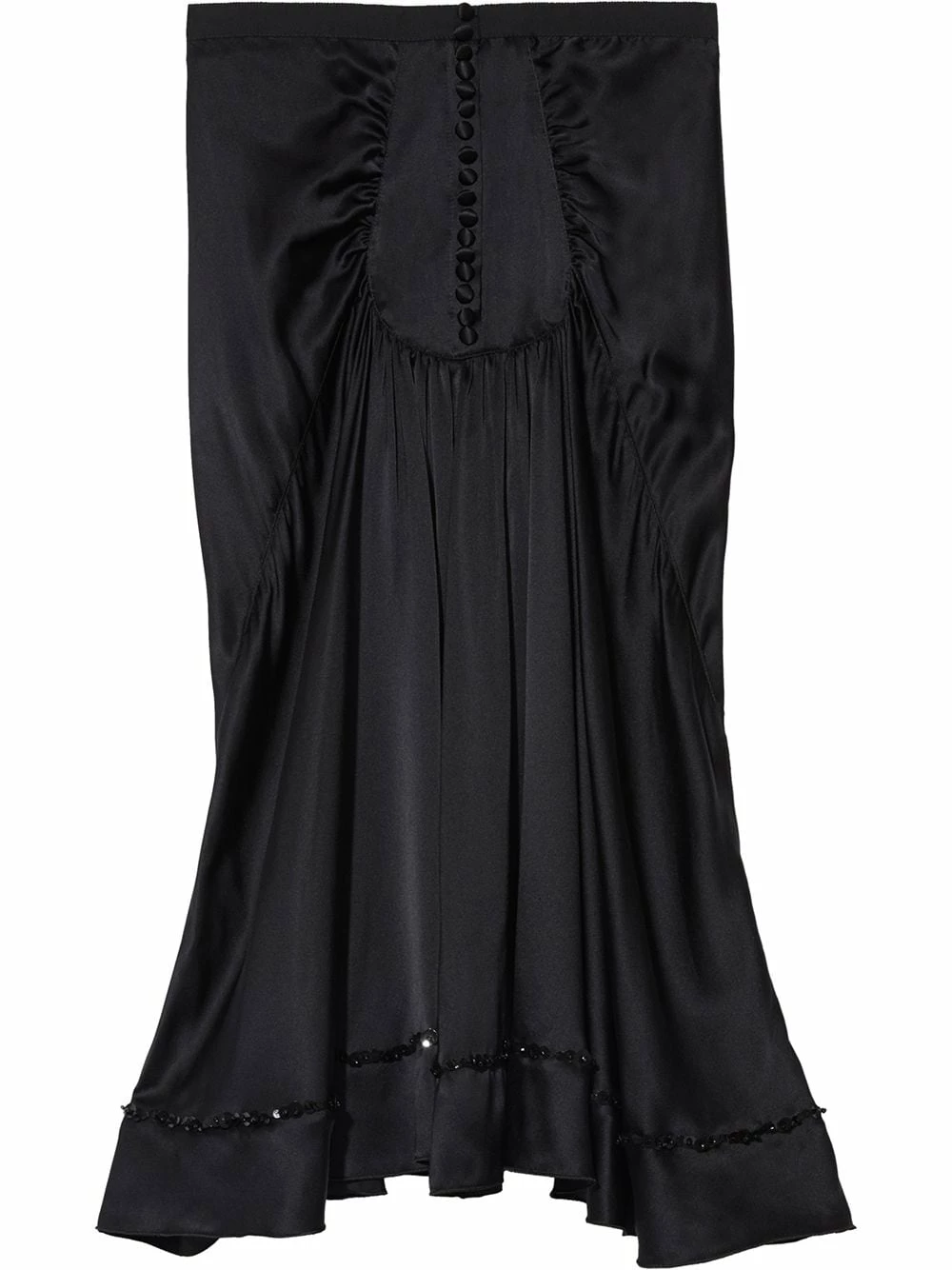Design évasé, boutonnière sur le devant, fermeture zippée devant, détails de fronces. Couleur : noir.