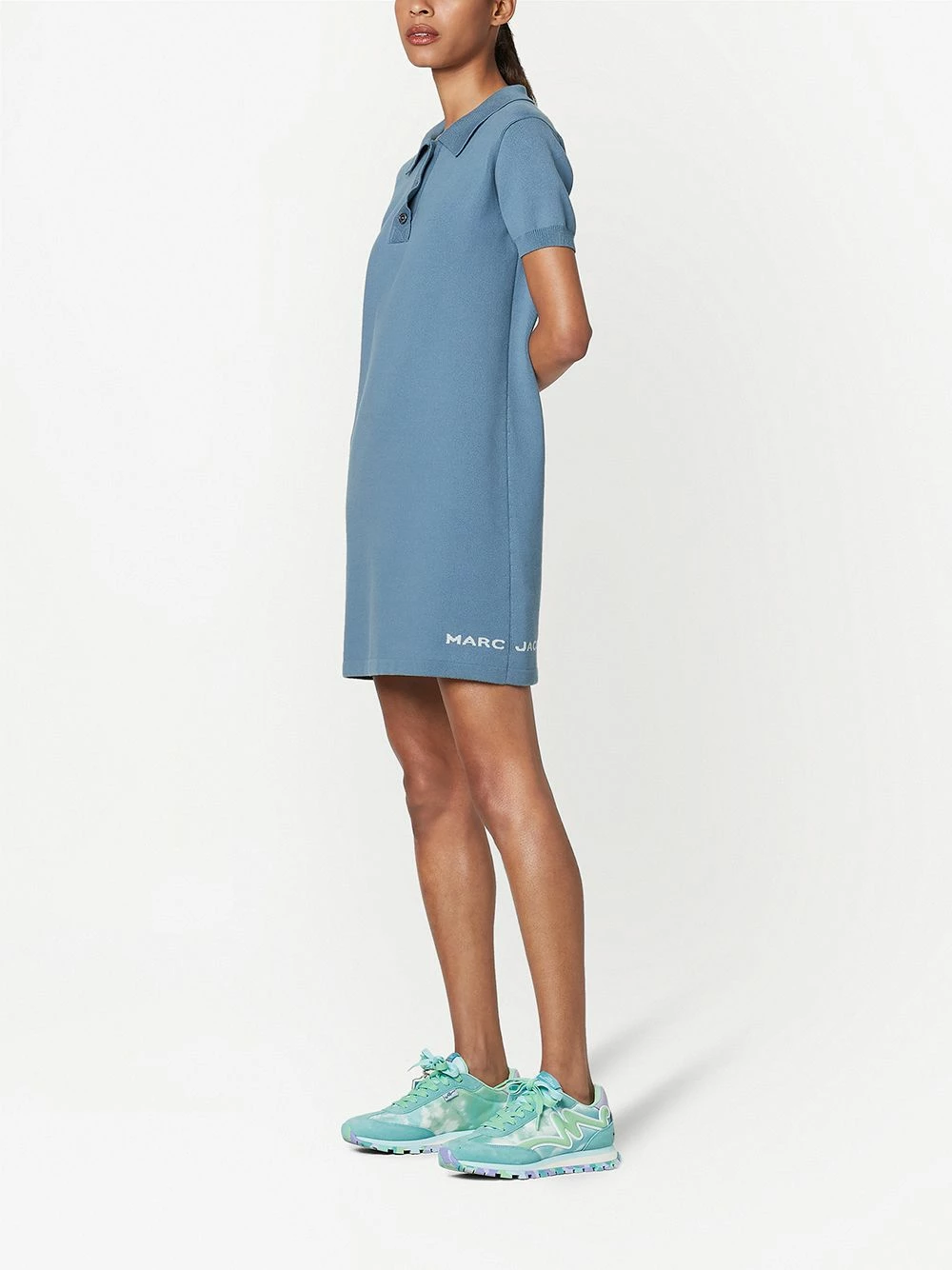 Logo imprimé sur le côté, fines nervures, col polo, manches courtes. Matière : coton.