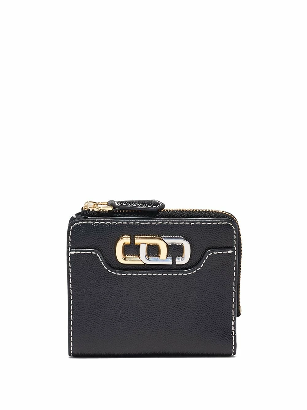 Détails de chaßnes, fermeture zippée sur le dessus, poche plaquée sur le devant, fentes pour carte. Couleur : noir. MatiÚre : cuir.