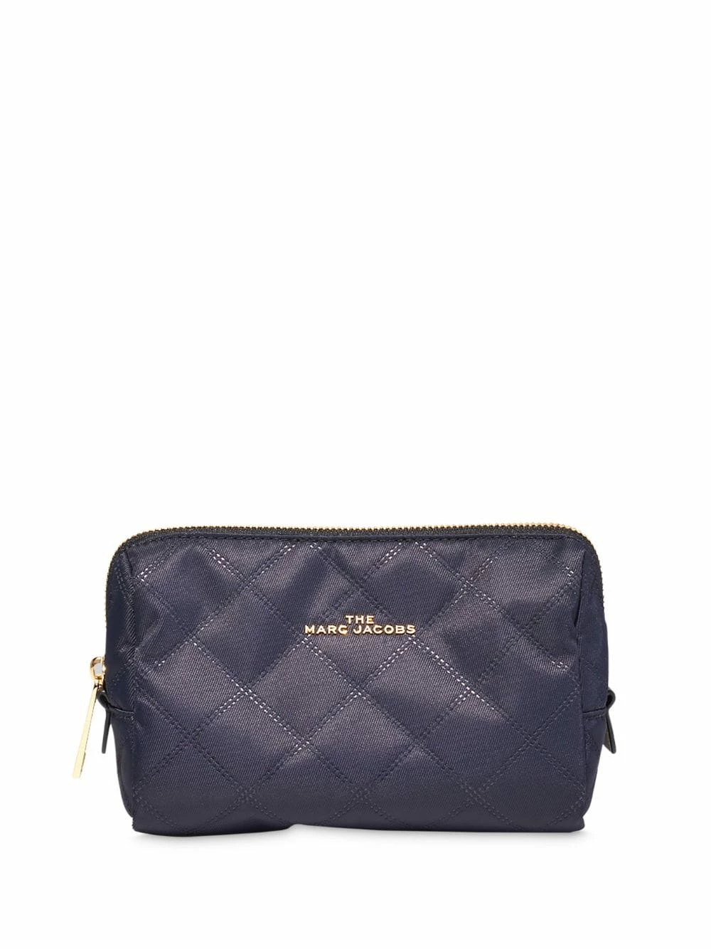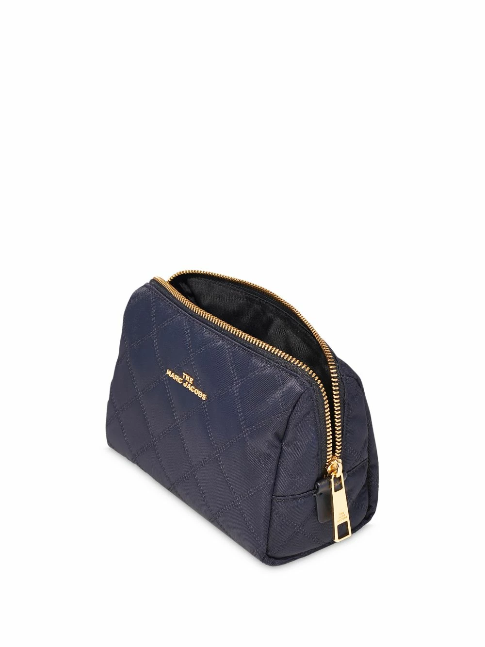 Design matelassé, plaque logo dorée, fermeture zippée sur le dessus. Couleur : noir.