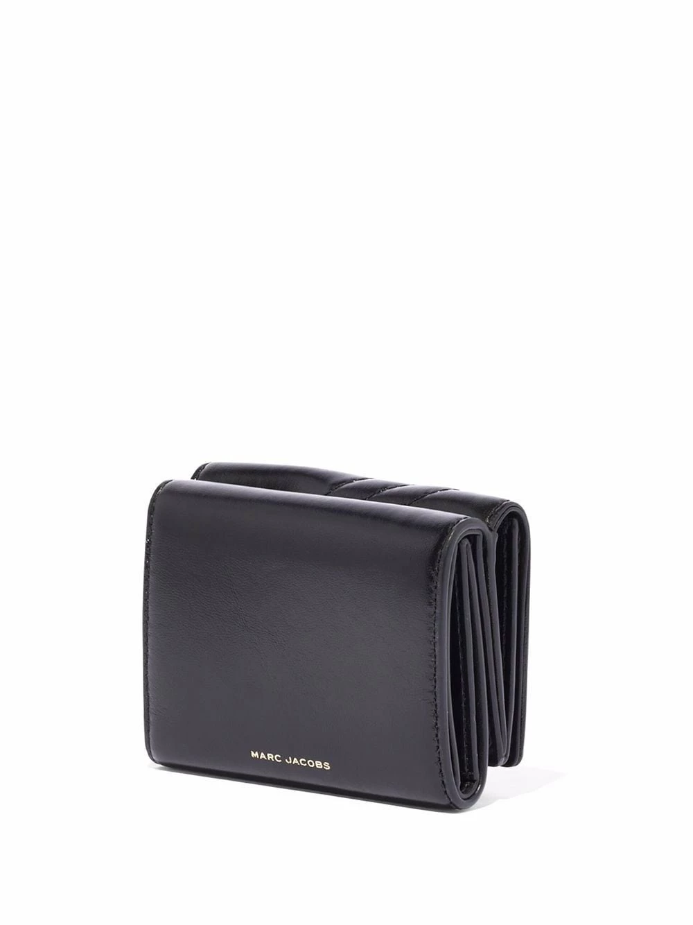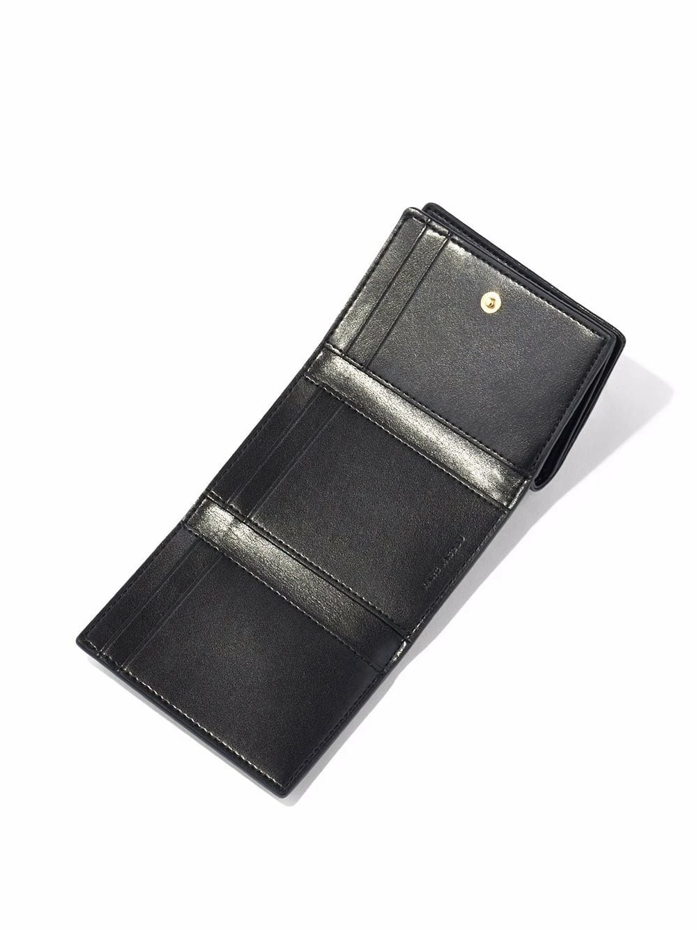 Plaque logo, finitions en métal doré, fentes pour carte. Matière : peau d’agneau.