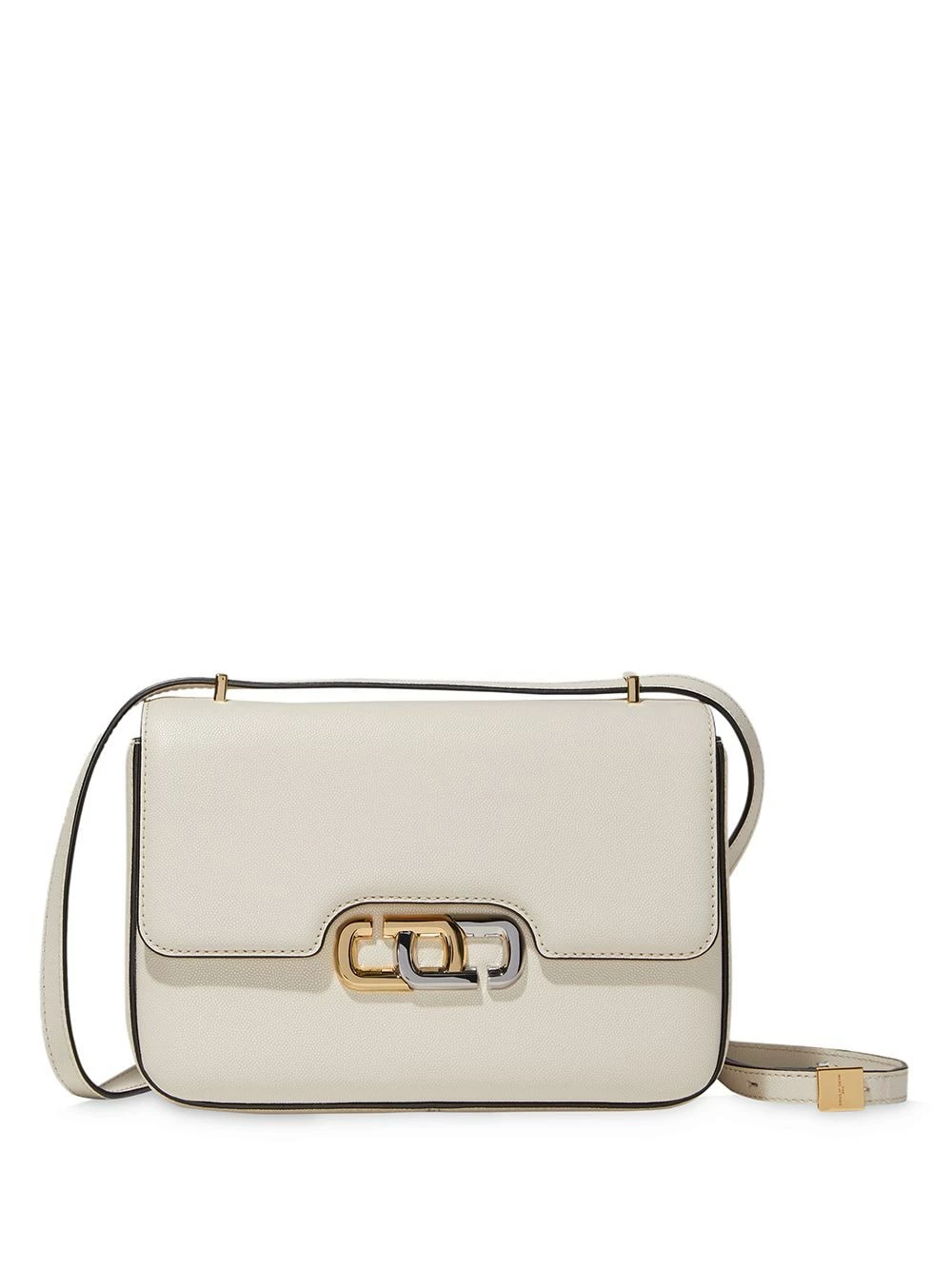 Rabat sur le dessus à fermeture magnétique, bride portée épaule détachable, poche intérieure zippée, patch logo intérieur. Couleur : blanc. Matière : cuir.