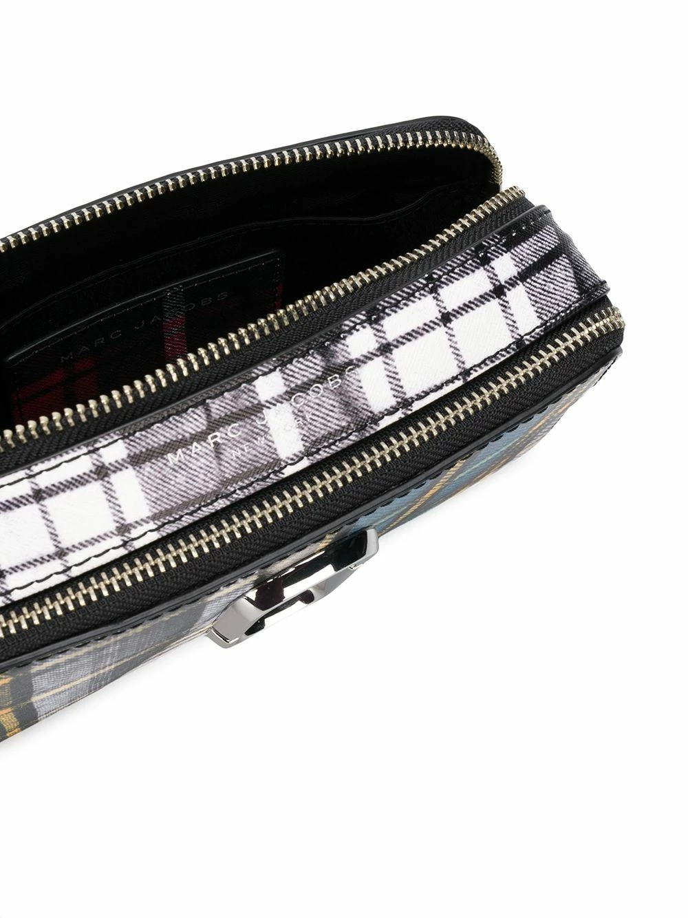Snapshot small camera bag en cuir Marc Jacobs avec bride porté épaule détachable et ajustable, motif tartan, une plaque logo argentée, poche arrière et logo embossé. Couleur : multicolore.
