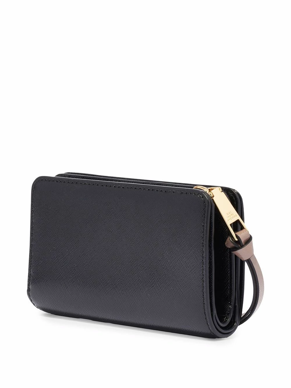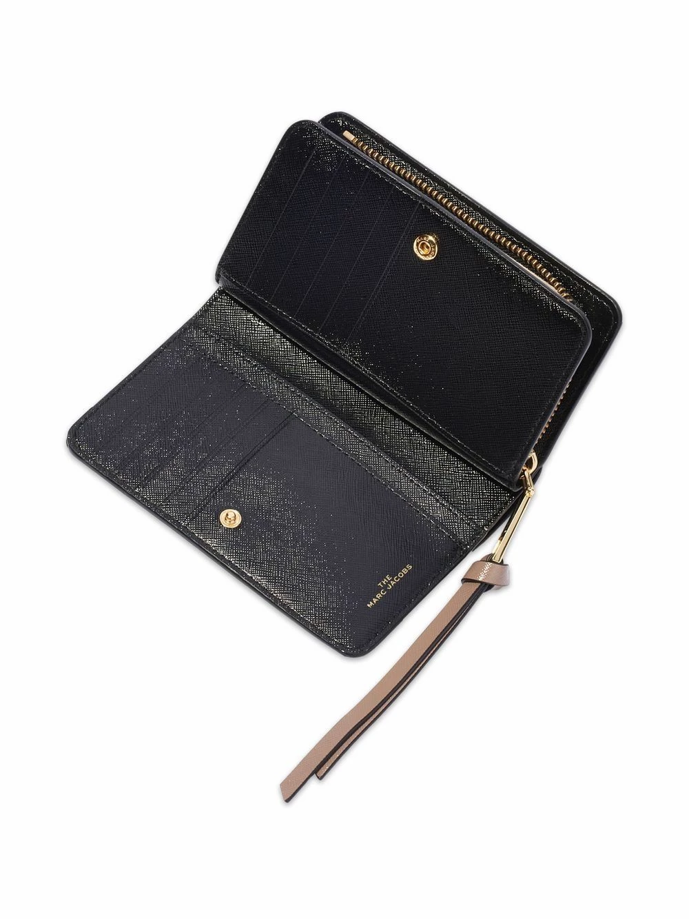 Plaque logo dorée, logo interne embossé, poche ticket, compartiment à billets intérieur, compartiments intérieurs pour carte. Matière : cuir.