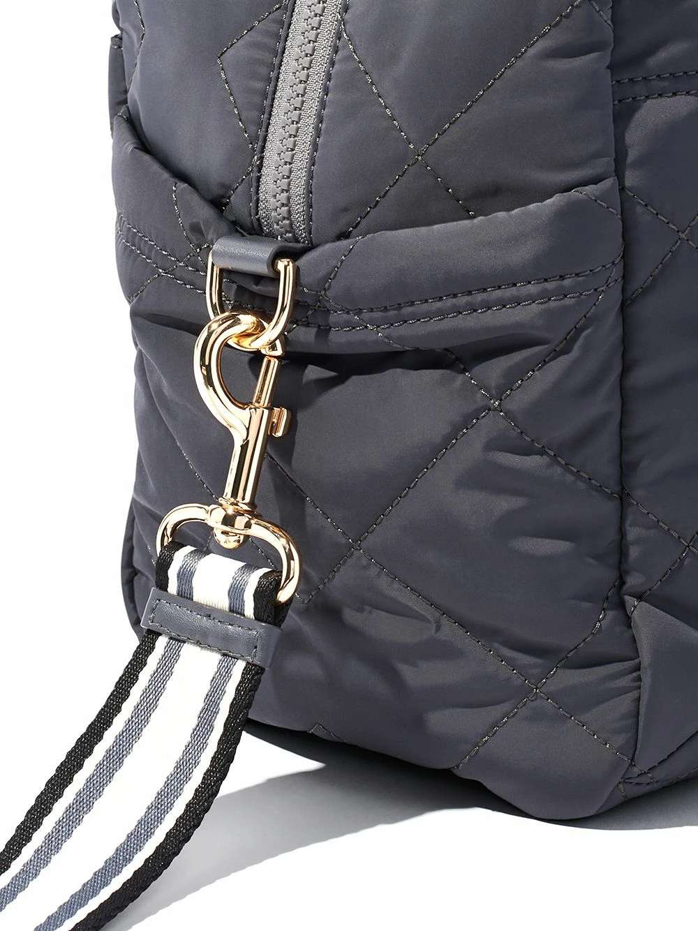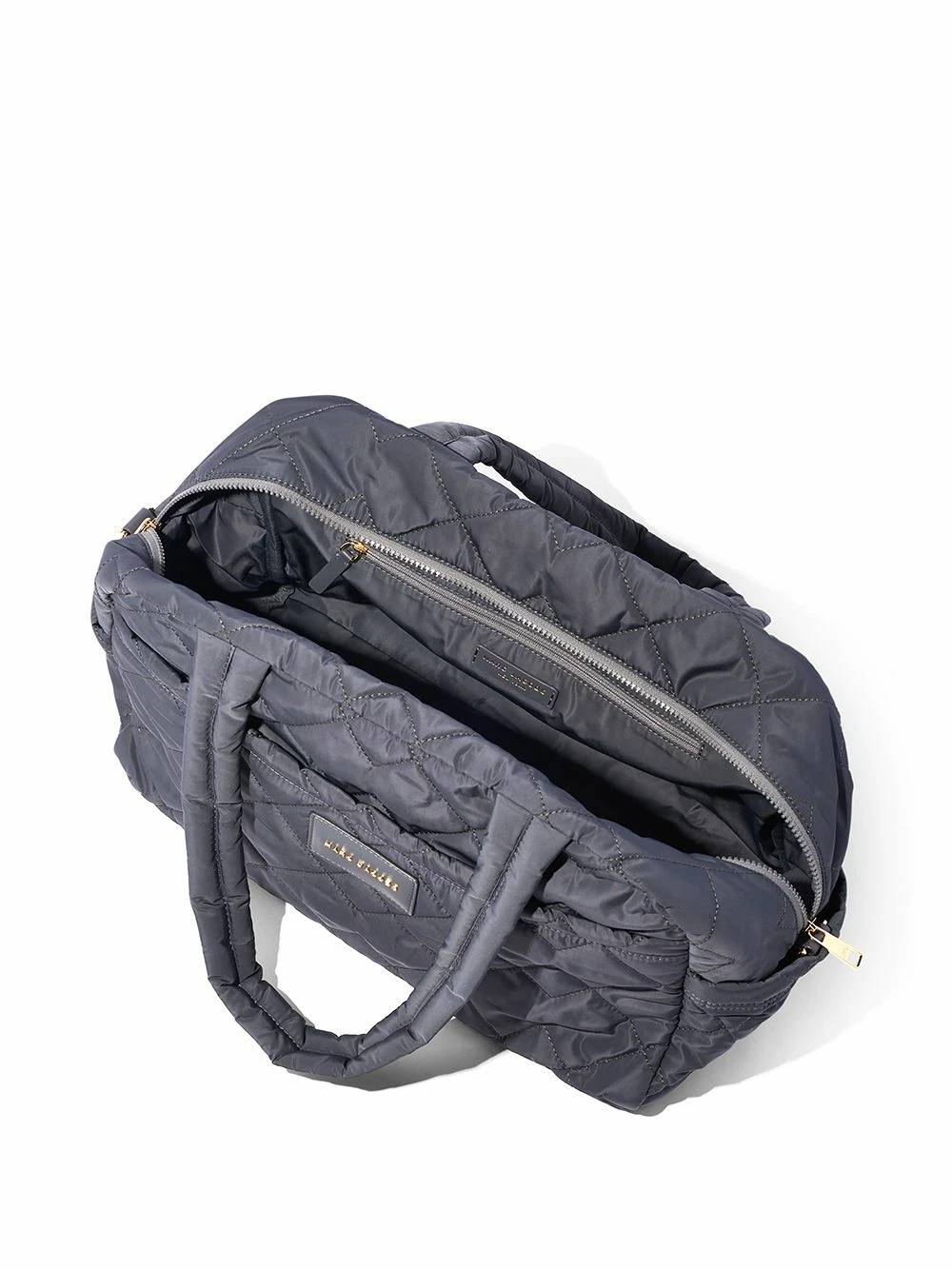 Matelassage à surpiqûres en losange, patch logo sur le devant, compartiment principal, fermeture zippée sur le dessus, anses sur le dessus, bride porté épaule détachable.