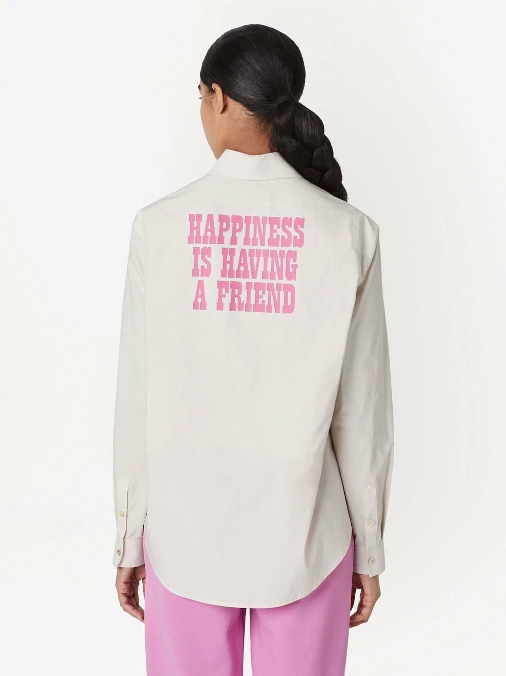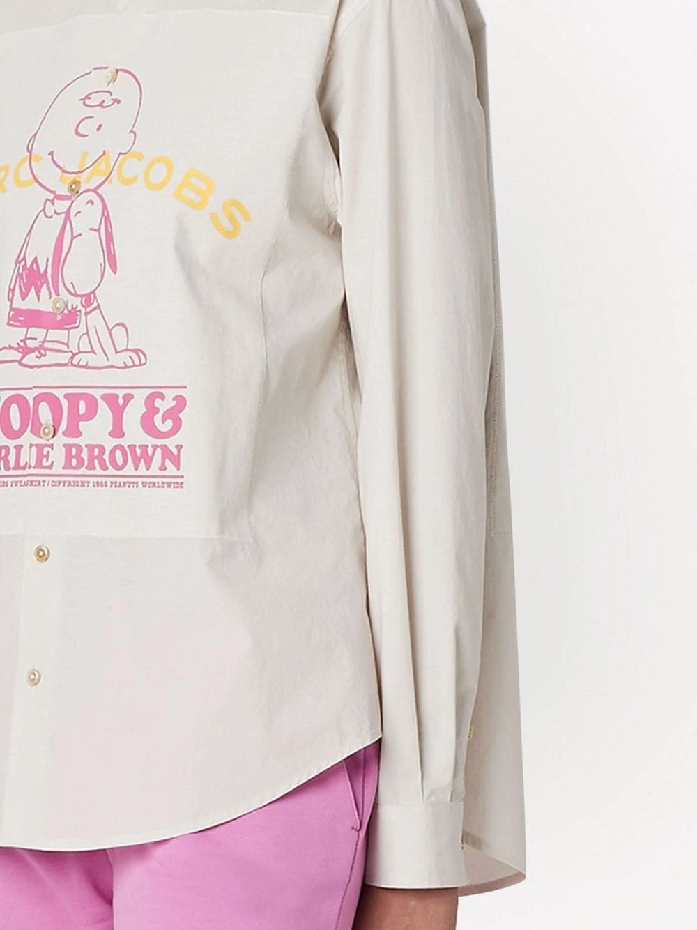 Imprimé graphique, boutonnière sur le devant, col classique, manches longues. Matière : coton.