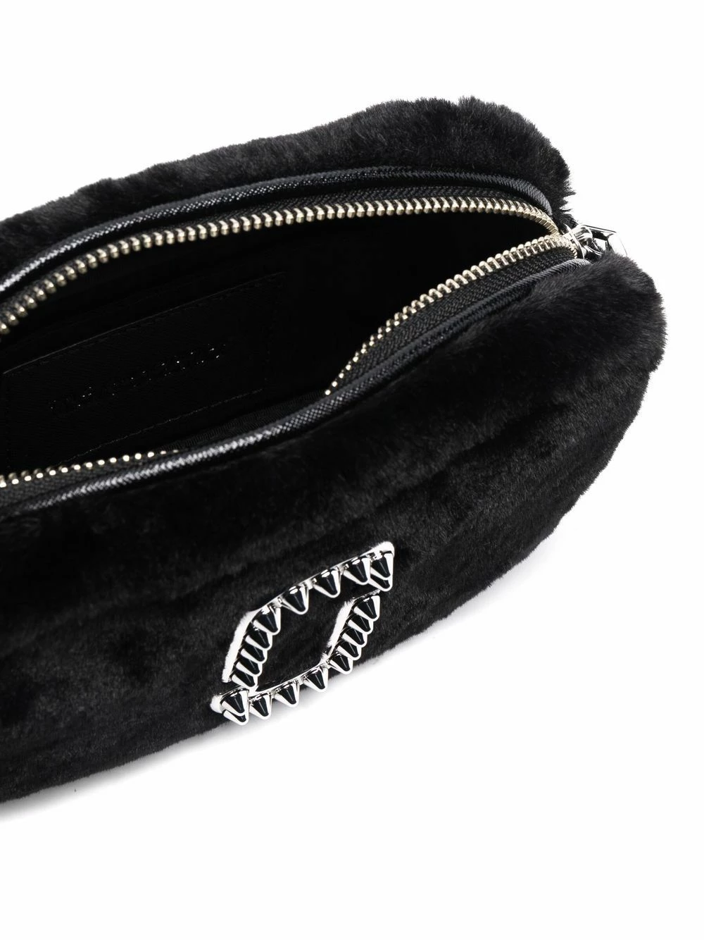 Finitions à clous argentés Rockstud, plaque logo argentée, fermeture zippée sur le dessus, compartiment principal, bride porté épaule en chaîne. Couleur : noir. Matière : cuir de veau.