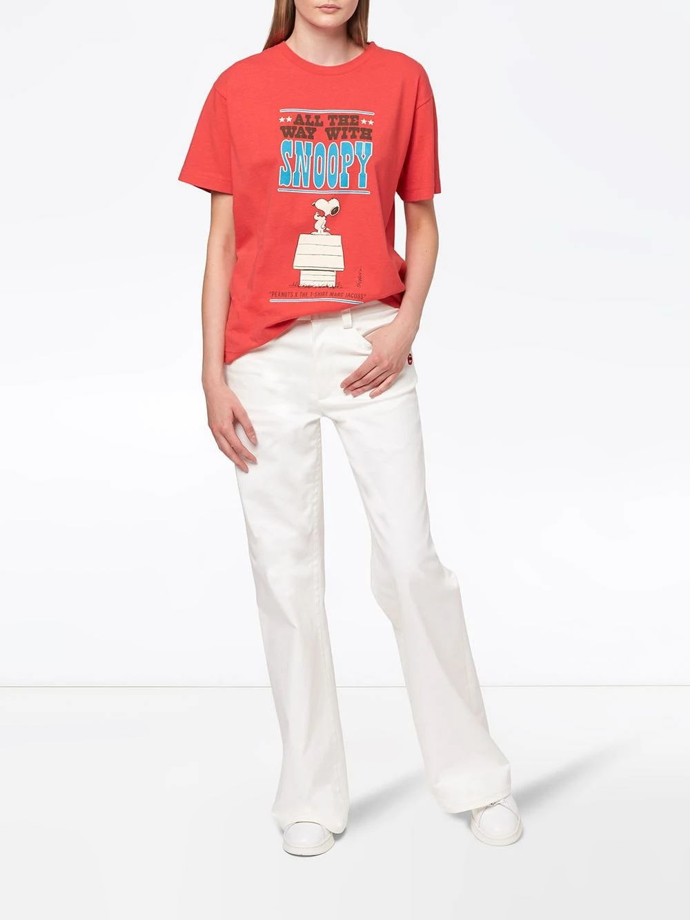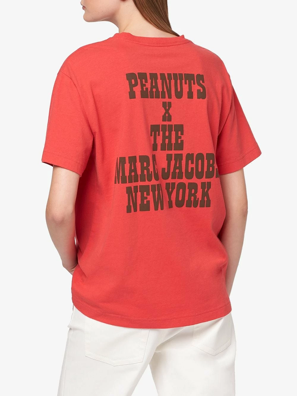 X Peanuts t-shirt The T-Shirt Marc Jacobs avec encolure ras du cou, manches courtes, imprimé graphique et ourlet droit. Couleur : rouge.