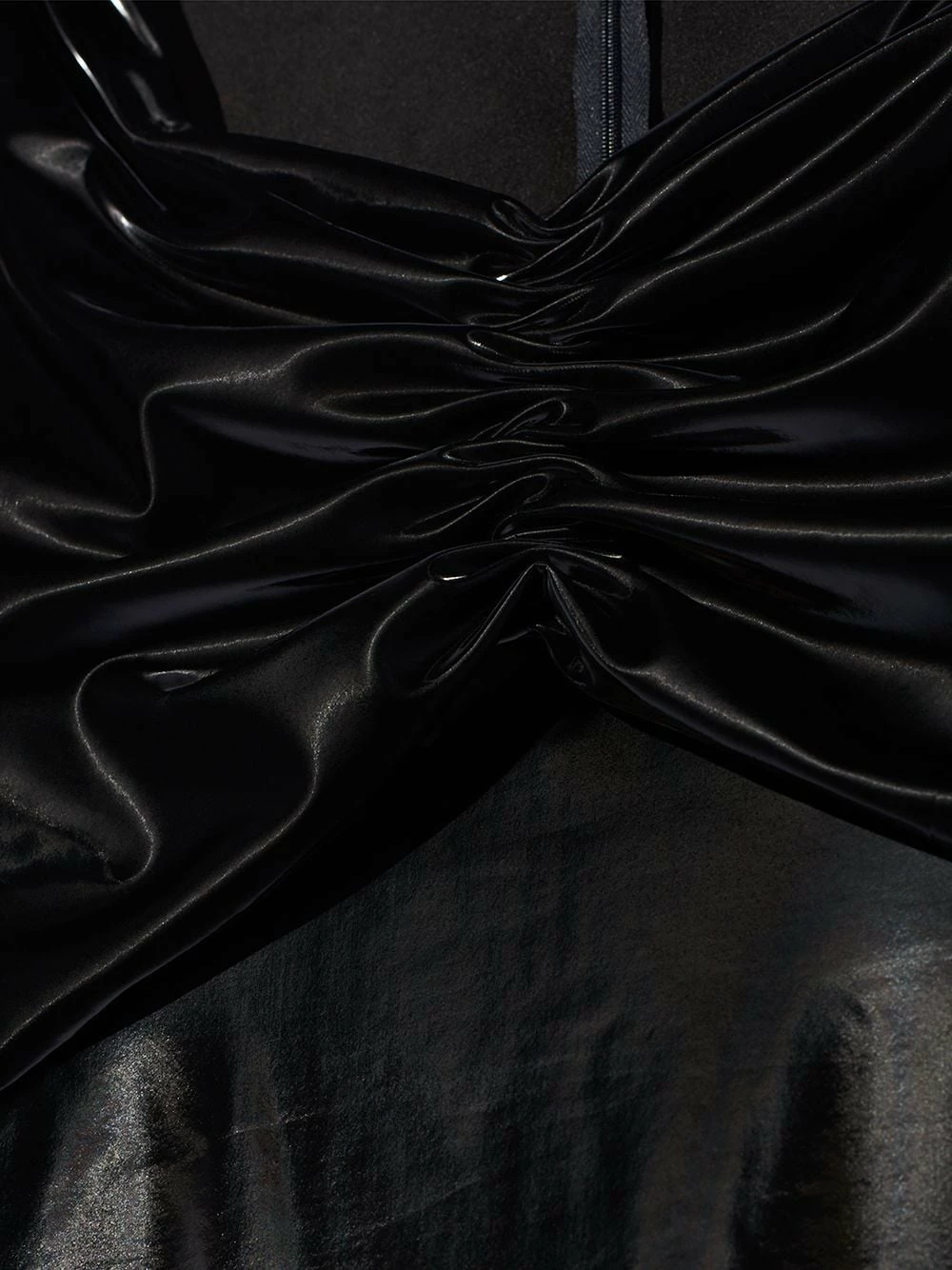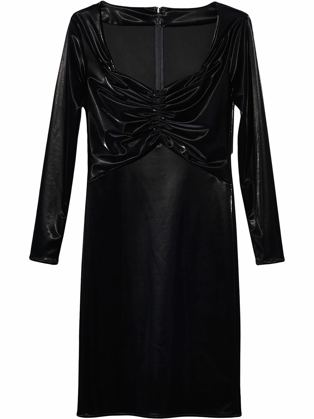 Détails de fronces, encolure cœur, manches longues, fermeture zippée dissimulée à l’arrière, ourlet droit. Couleur : noir.