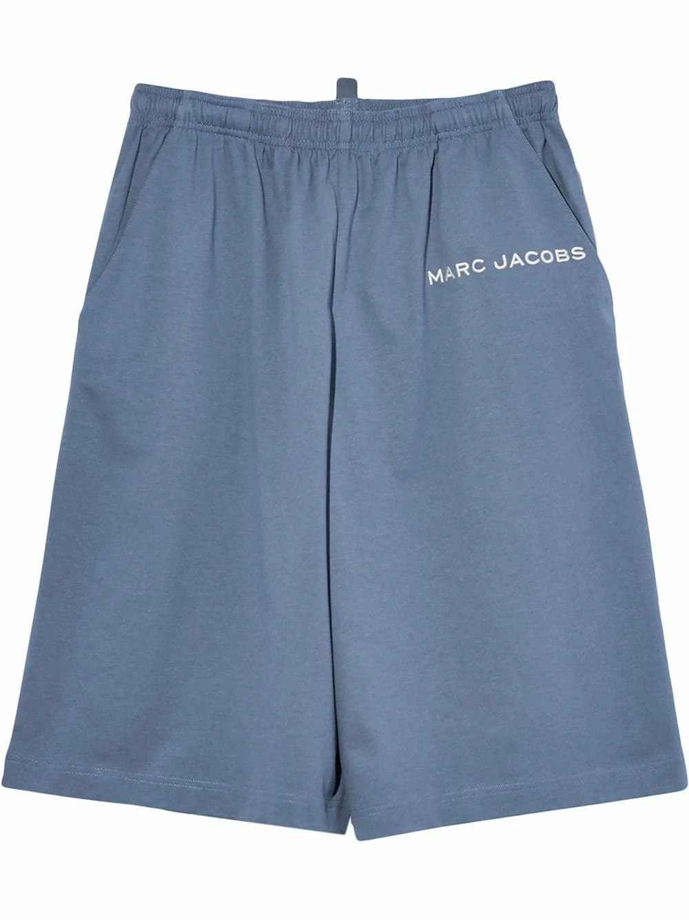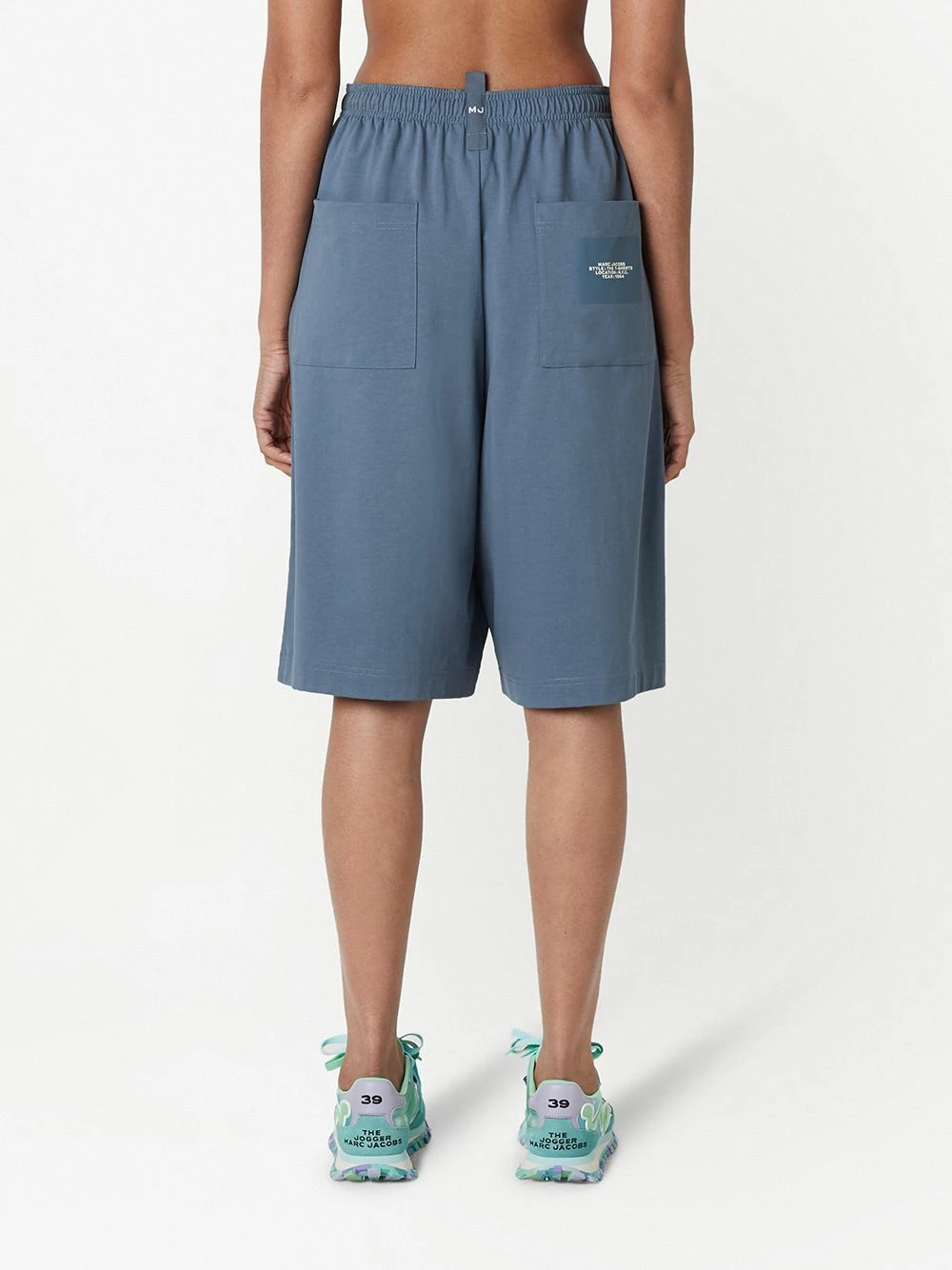 Logo brodé, ceinture élastique, poches plaquées latérales, poches arrière plaquées. Couleur : bleu. Matière : coton.