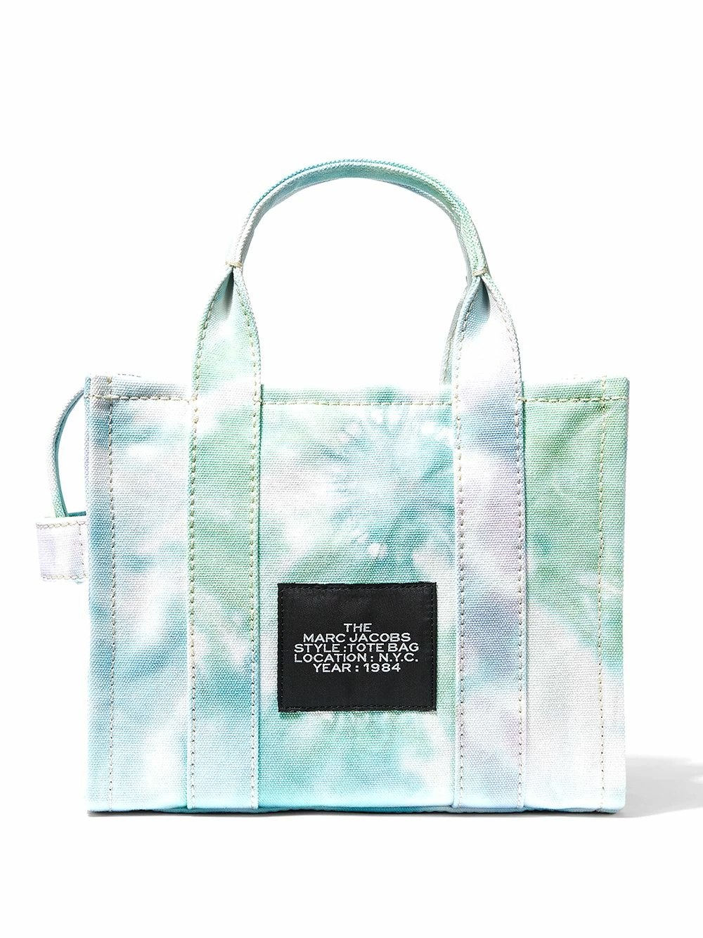 Imprimé tie dye, logo imprimé sur le devant, patch logo sur l’arrière, anses arrondies, bride porté épaule détachable et ajustable, fermeture zippée sur le dessus, compartiment principal, ornements argentés. Matière : coton.