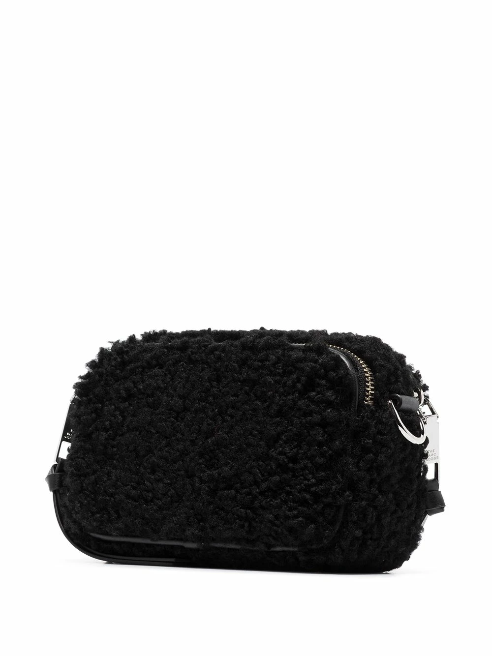 Plaque logo argentée, fermeture zippée sur le dessus, bride porté épaule détachable et ajustable, compartiment principal. Couleur : noir. Matière : peau de mouton.