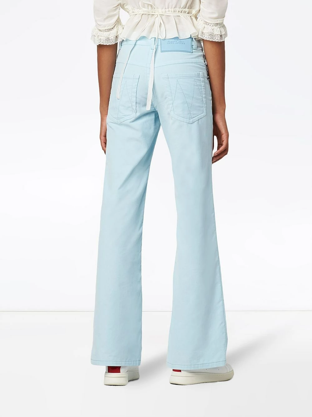 Design évasé, passants de ceinture, fermeture à zip et boutons sur le devant, 5 poches classiques. Couleur : bleu. Matière : coton.