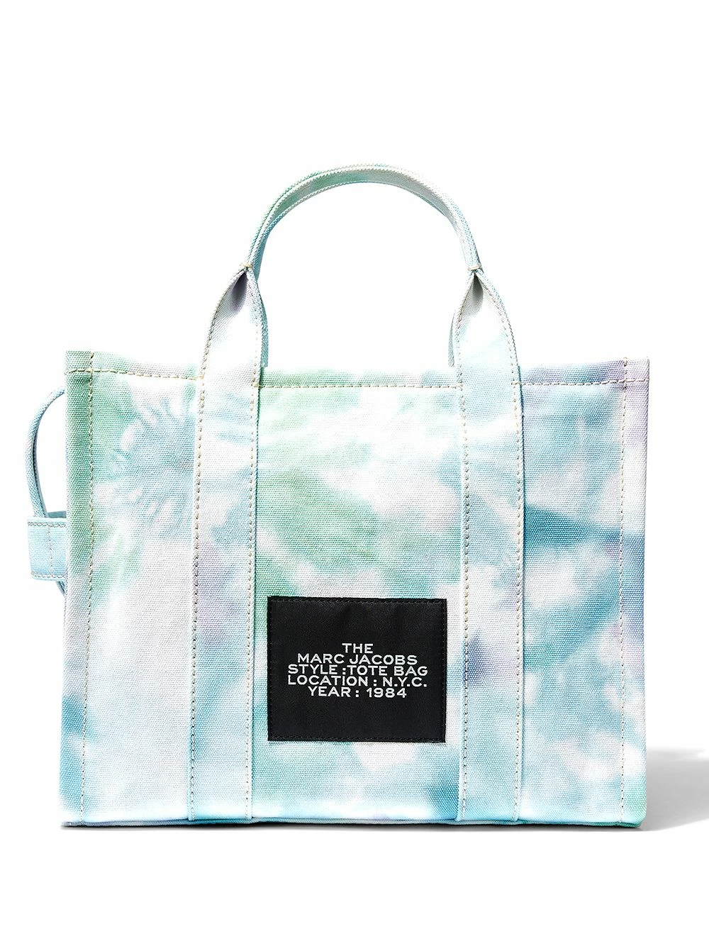 Imprimé tie dye, logo imprimé sur le devant, patch logo sur l’arrière, anses arrondies, bride porté épaule détachable et ajustable, fermeture zippée sur le dessus, compartiment principal, patch logo intérieur, ornements argentés. Matière : coton.