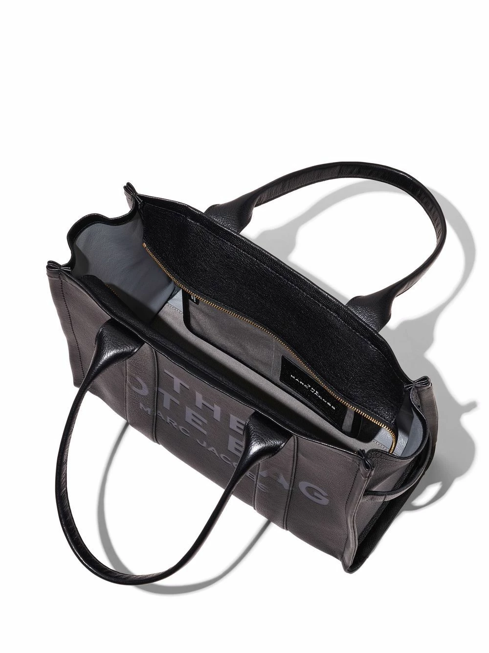 Anses arrondies, coutures ton sur ton, texture grainée, logo embossé sur le devant, fermeture zippée sur le dessus, compartiment principal, poches plaquées intérieures. Couleur : noir. Matière : cuir.
