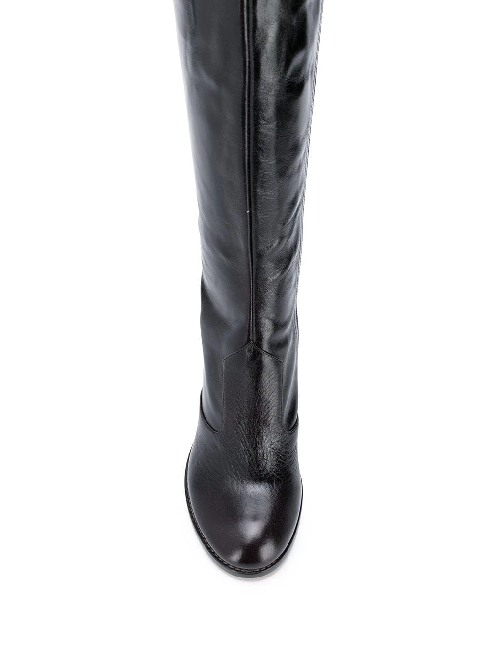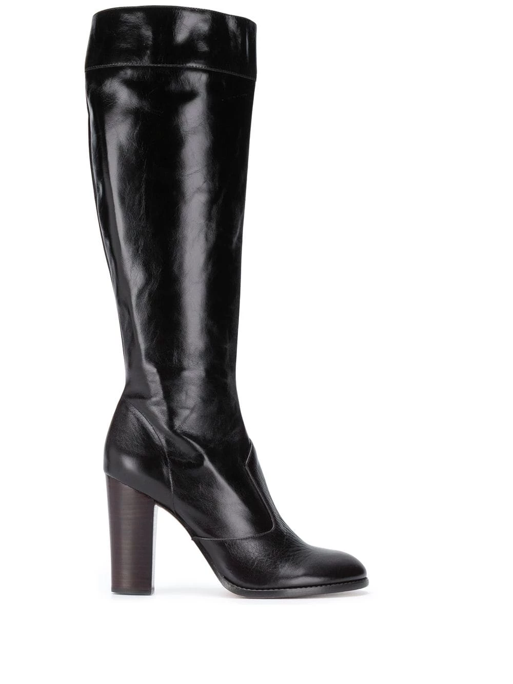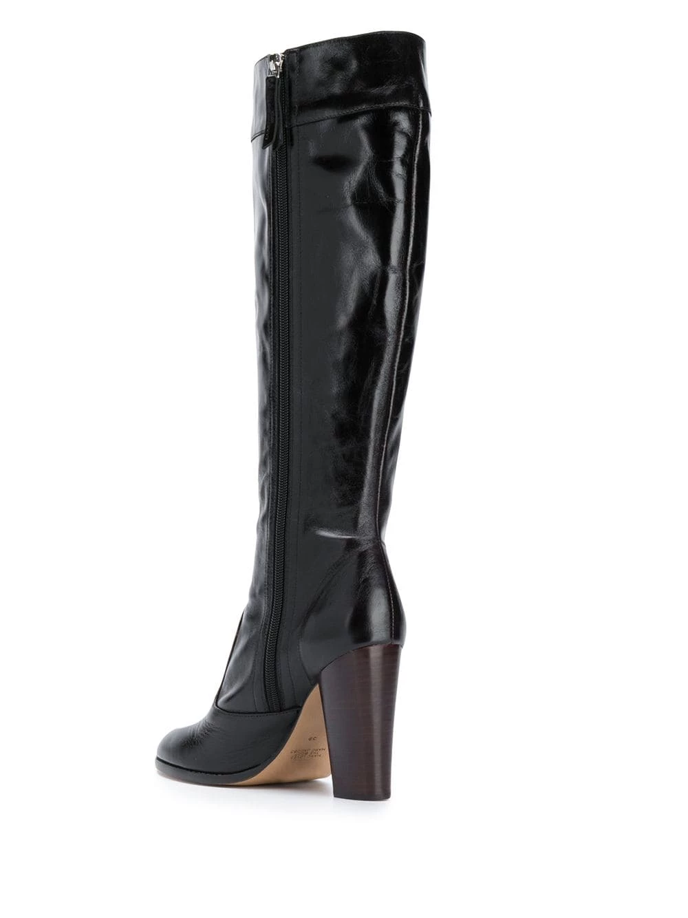 Bout rond, fermeture zippée sur le cÎté, talon haut épais. Couleur : noir. MatiÚre : cuir.