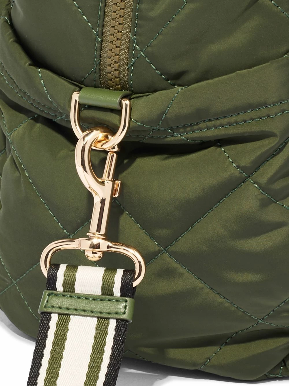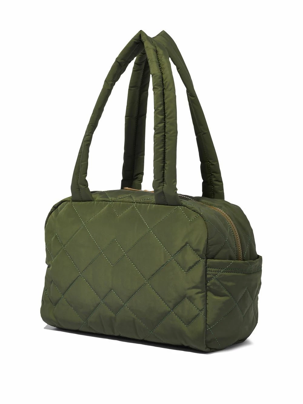 Effet matelassé, patch logo sur le devant, fermeture zippée sur le dessus, deux longues anses sur le dessus, bride porté épaule détachable et ajustable, compartiment principal, poches intérieures zippées, poche plaquée sur le devant.