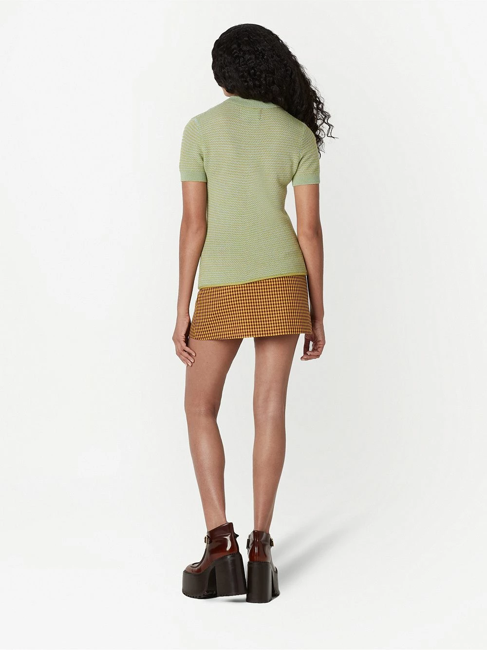 Design tricoté, col polo, patte de boutonnage sur le devant, manches courtes, ourlet droit.