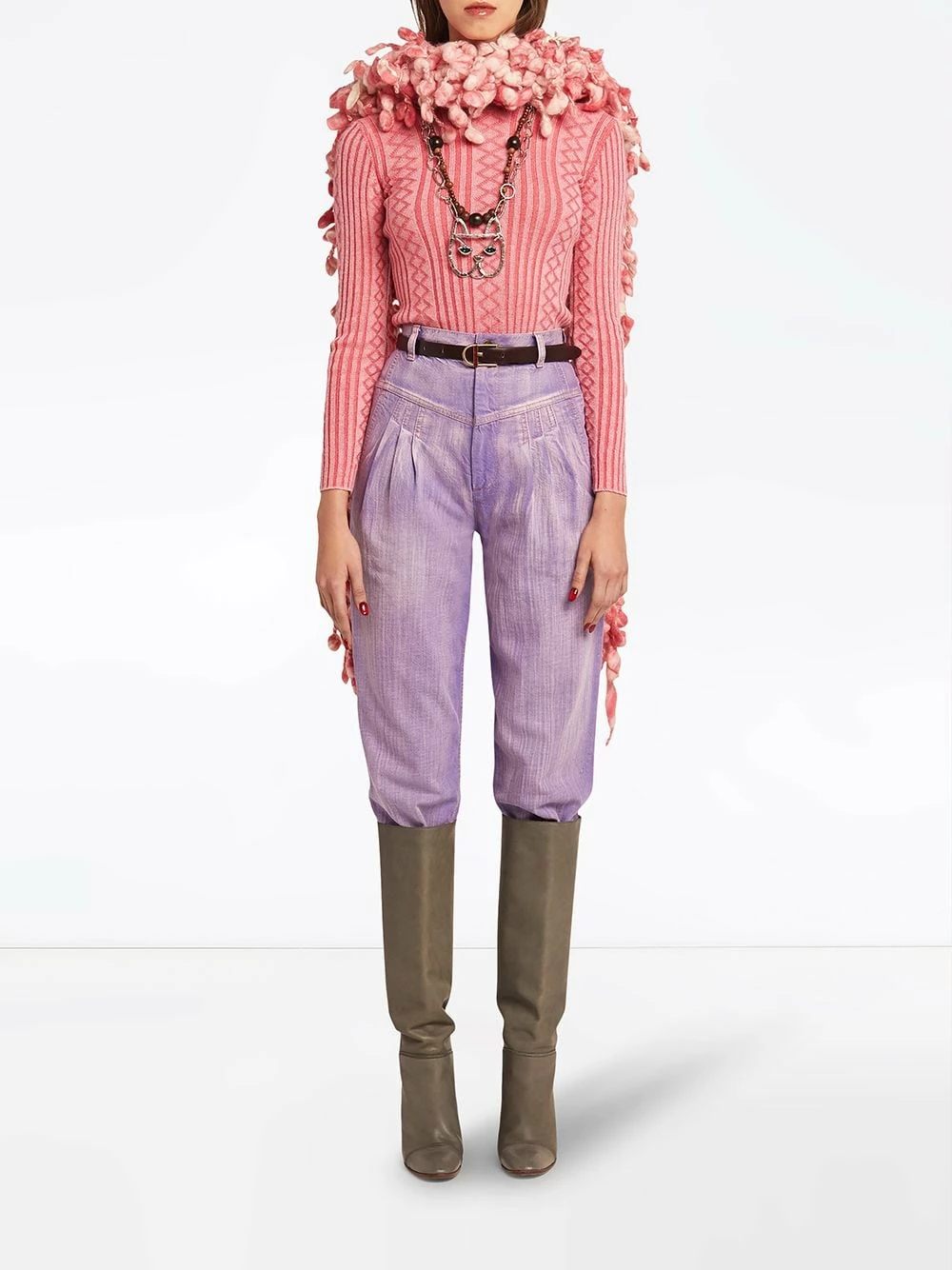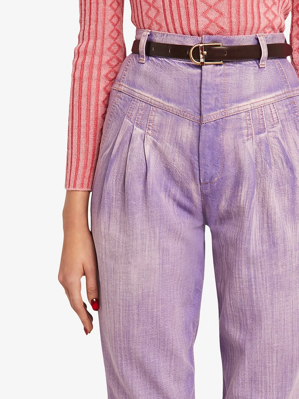 Passants de ceinture, fermeture dissimulée sur le devant, deux poches latérales passepoilées. Couleur : violet.