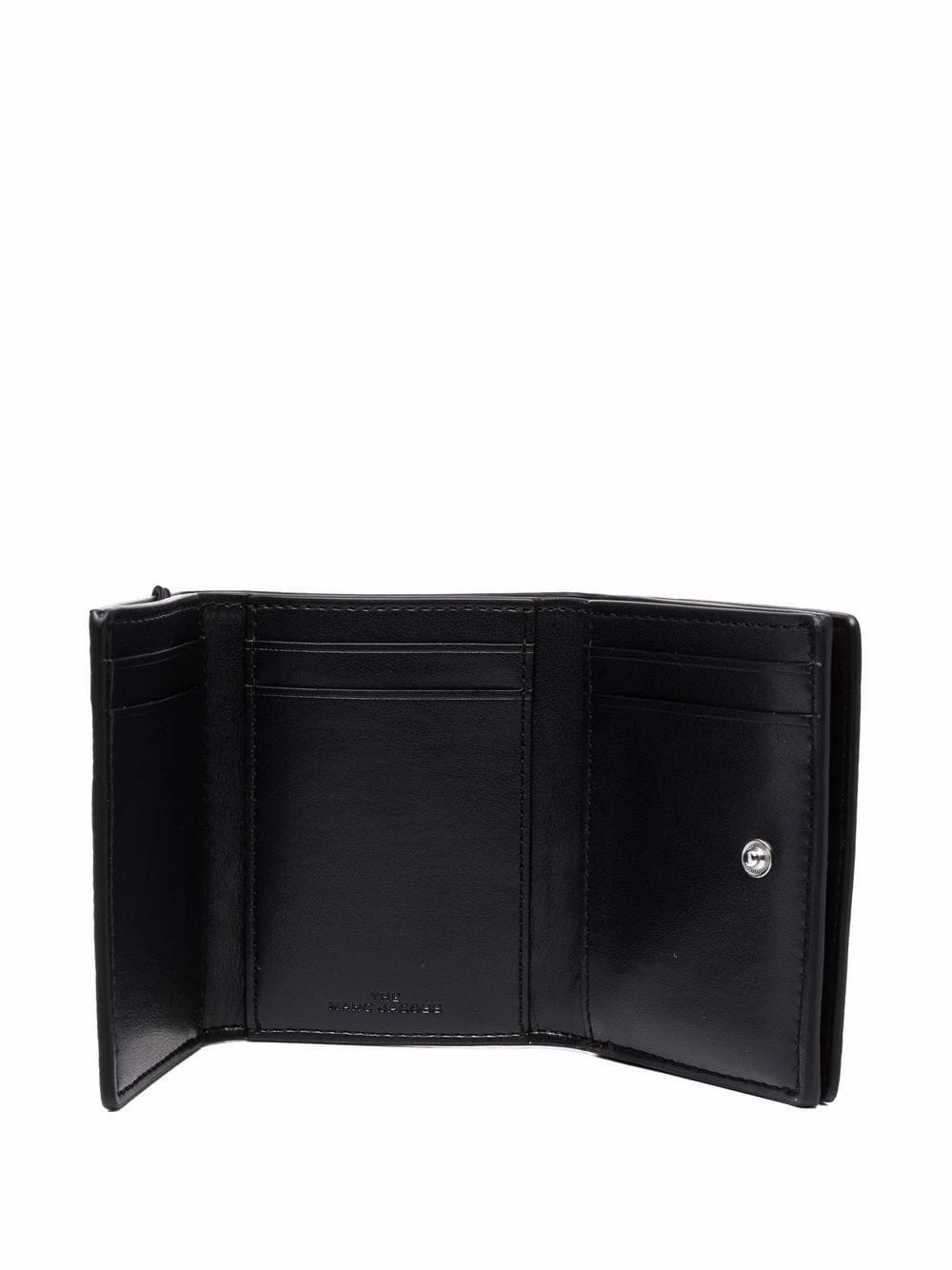 Design plié, texture grainée, plaque logo, compartiments intérieurs pour carte, compartiment à billets intérieur, fermeture à boutons pression. Matière : cuir de veau.