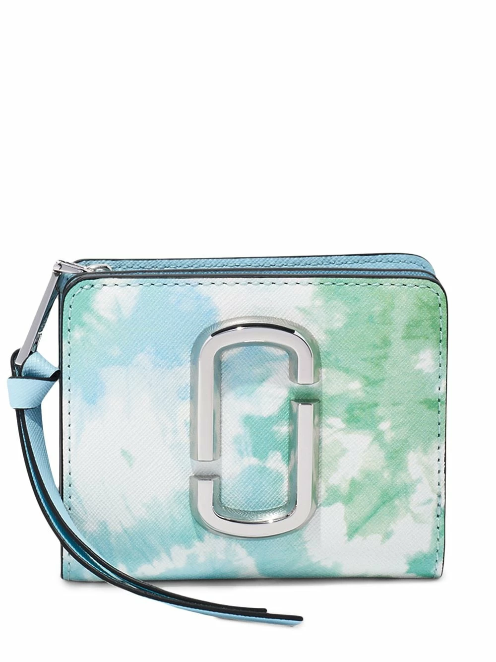 Design pliable, imprimé tie dye, plaque logo argentée, ornements argentés, compartiment principal, compartiments intérieurs pour carte, fermeture zippée tout autour. Matière : cuir.