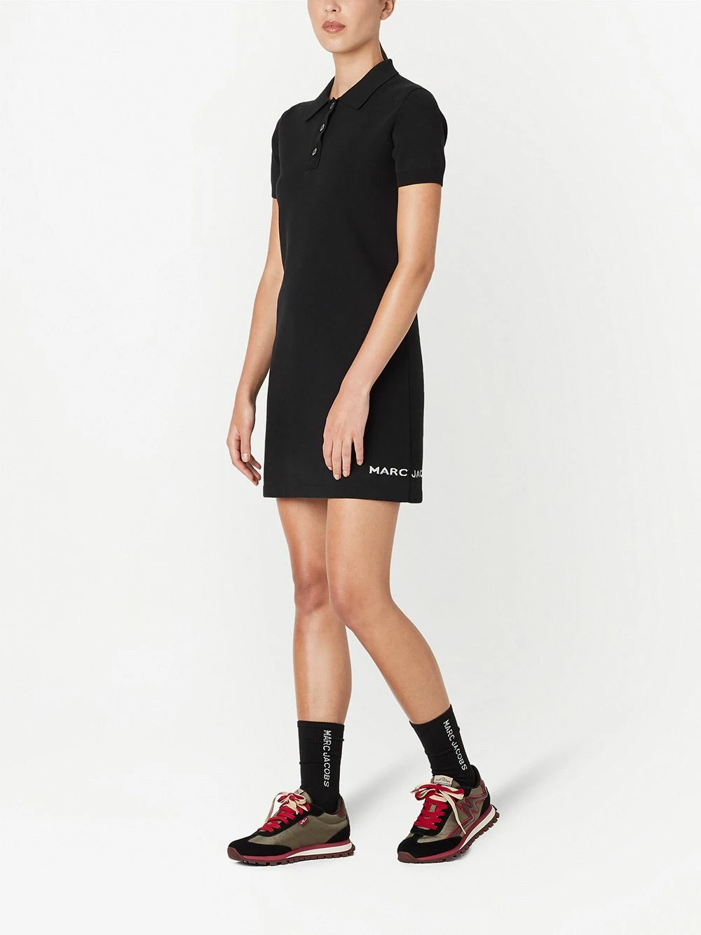 Logo imprimé sur le côté, fines nervures, col polo, manches courtes, taille ajustée. Couleur : noir. Matière : coton.