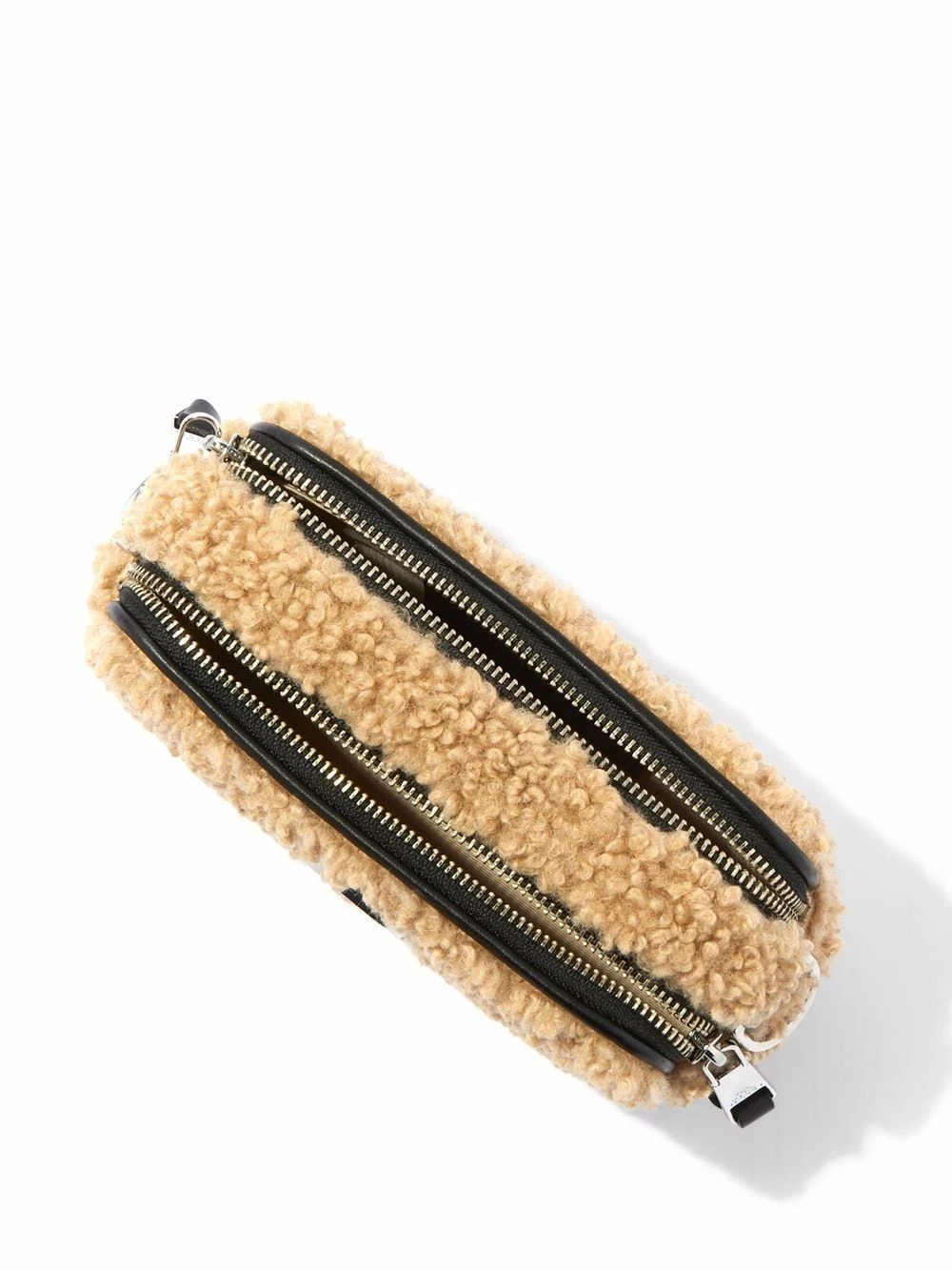 Design en peau lainée artificielle, fermeture zippée sur le dessus, bride porté épaule détachable et ajustable.