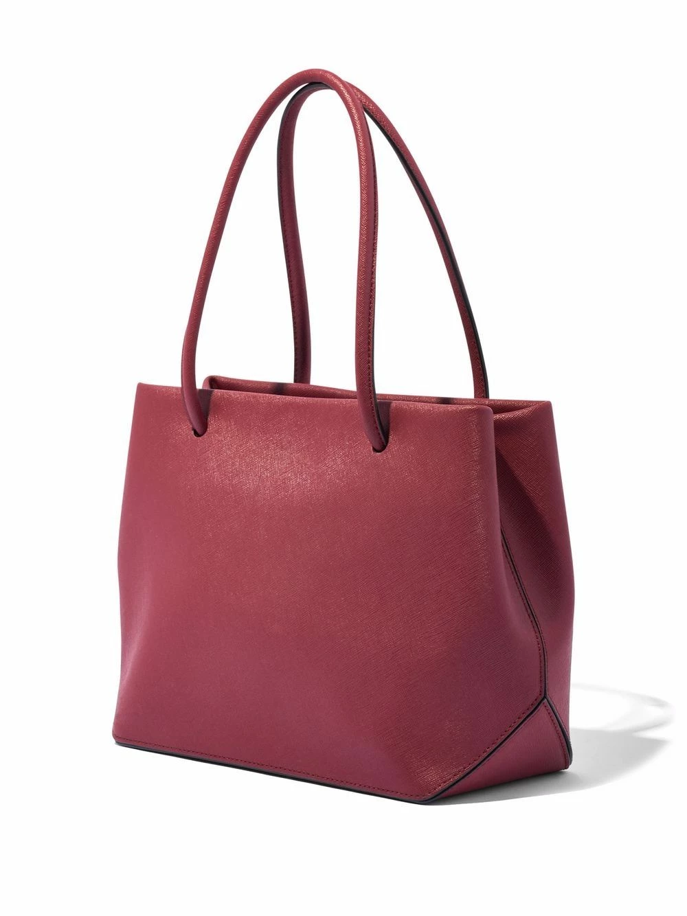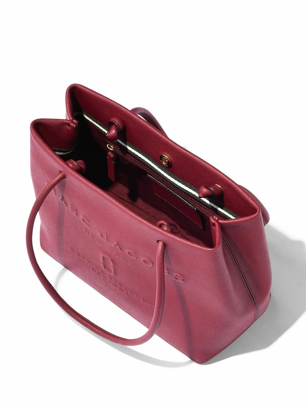 Logo embossé sur le devant, fermeture à boutons pression, anses sur le dessus, compartiment principal, poches intérieures zippées, patch logo intérieur. Matière : cuir.