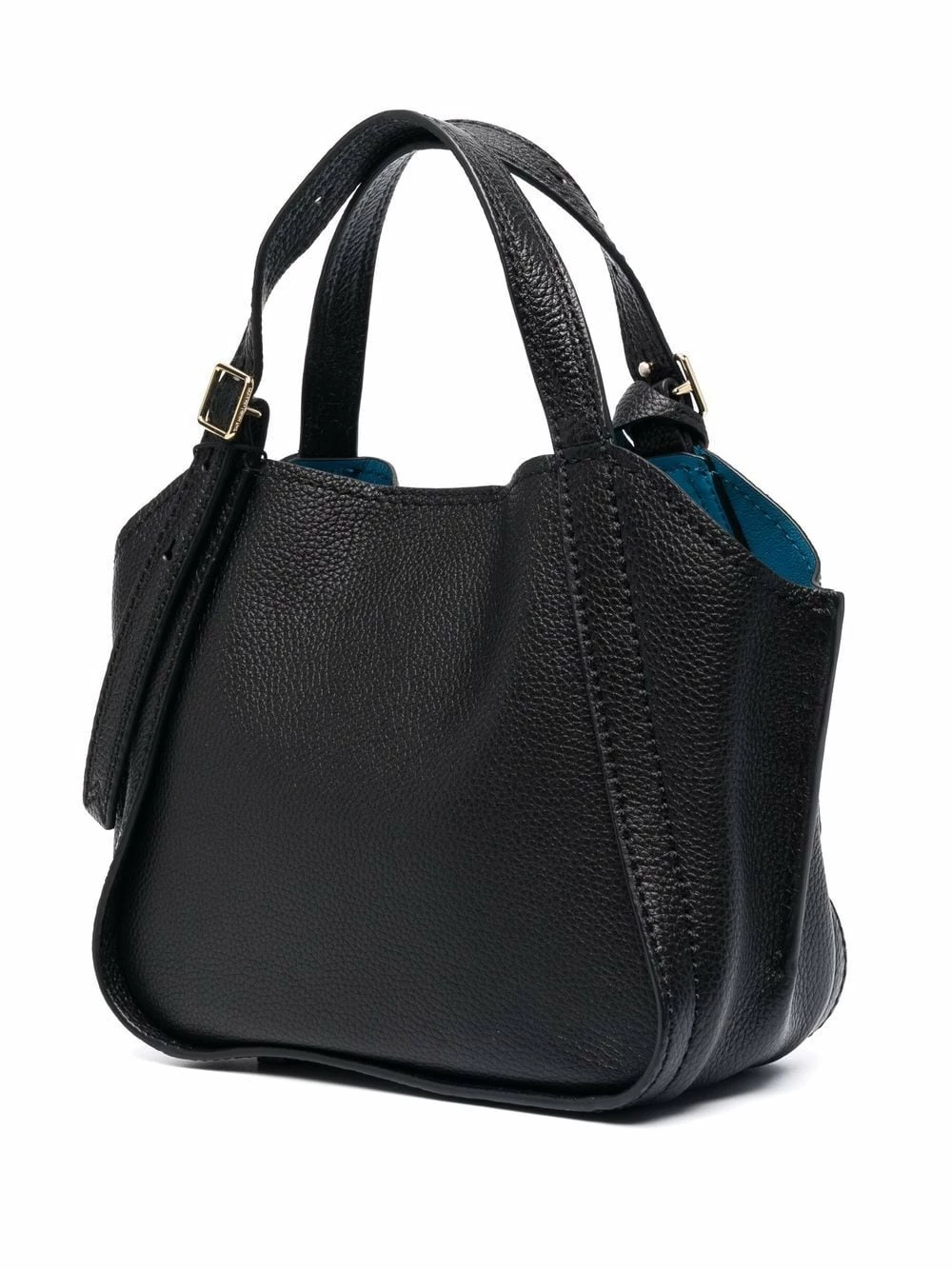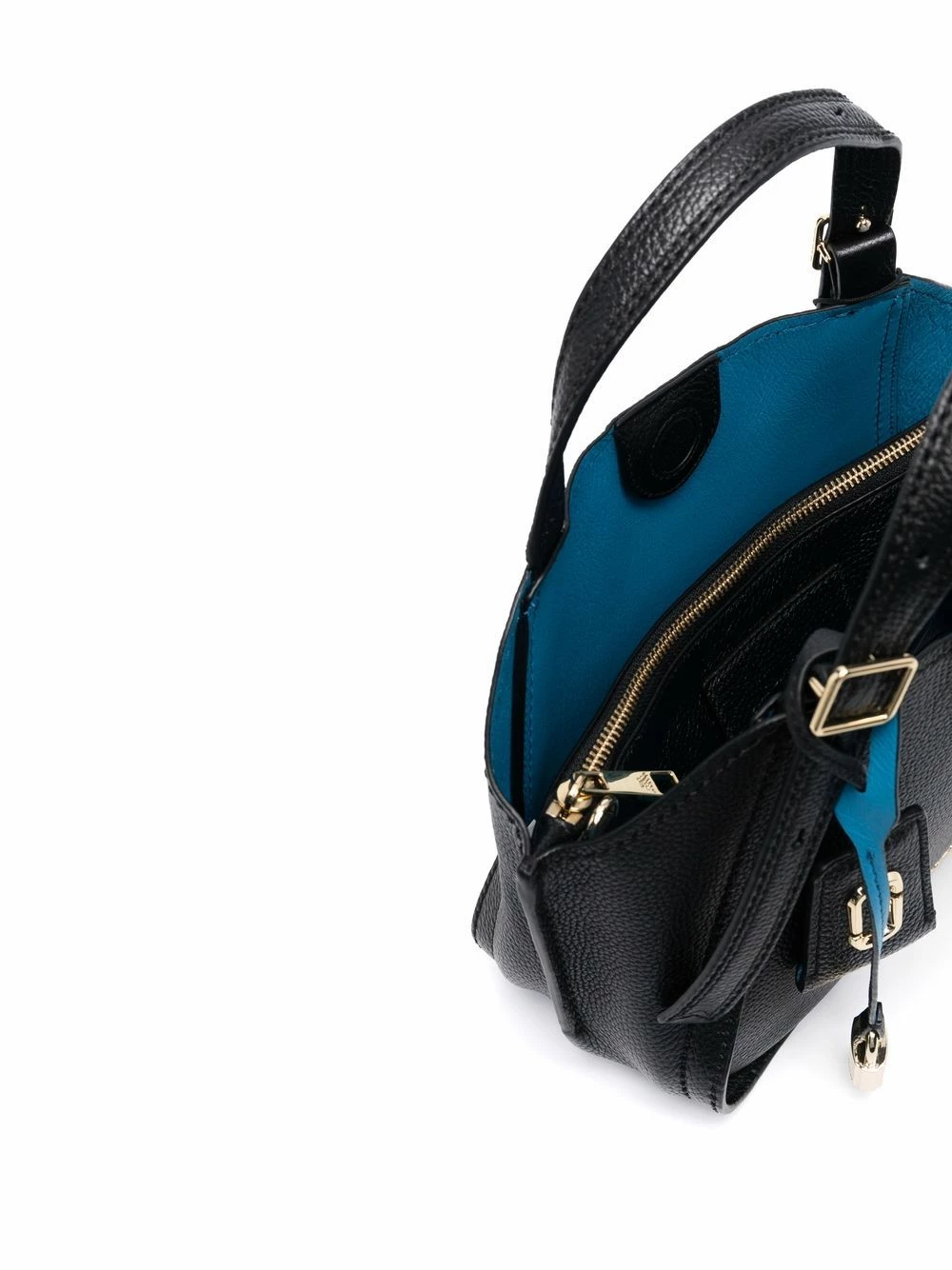 Logo imprimé sur le devant, anses arrondies, bride porté épaule détachable et ajustable, fermeture zippée sur le dessus. Couleur : noir. Matière : cuir de veau.
