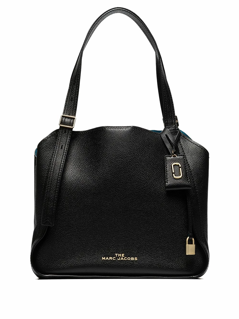 Texture grainée, logo embossé sur le devant, détail de cadenas, étiquette en cuir, pieds en métal, finitions en métal doré, ouverture sur le dessus, brides porté épaule ajustables, compartiment principal. Couleur : noir. Matière : cuir.