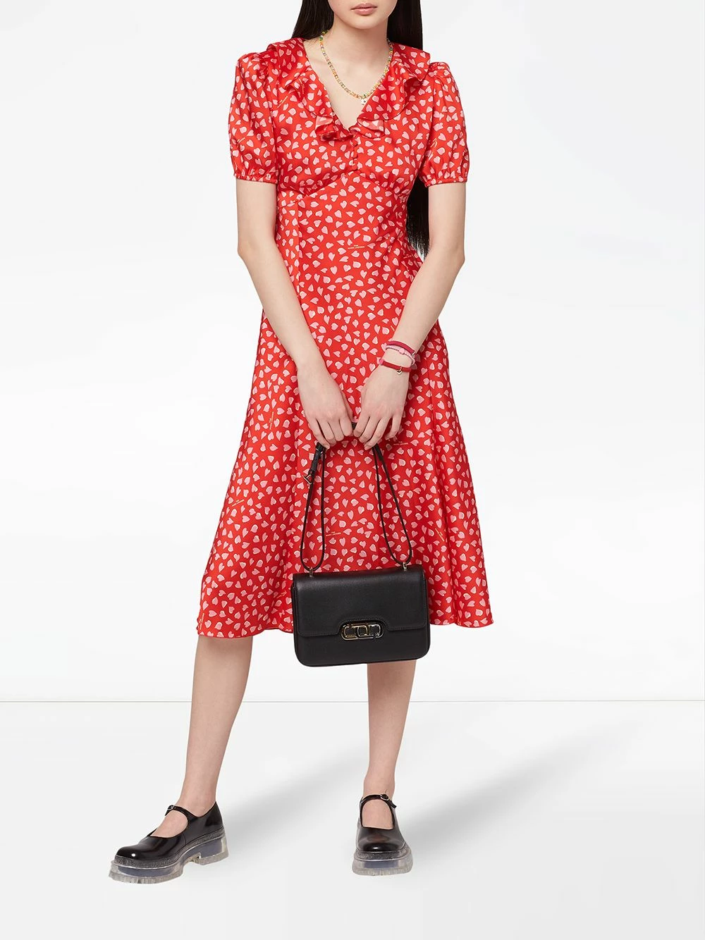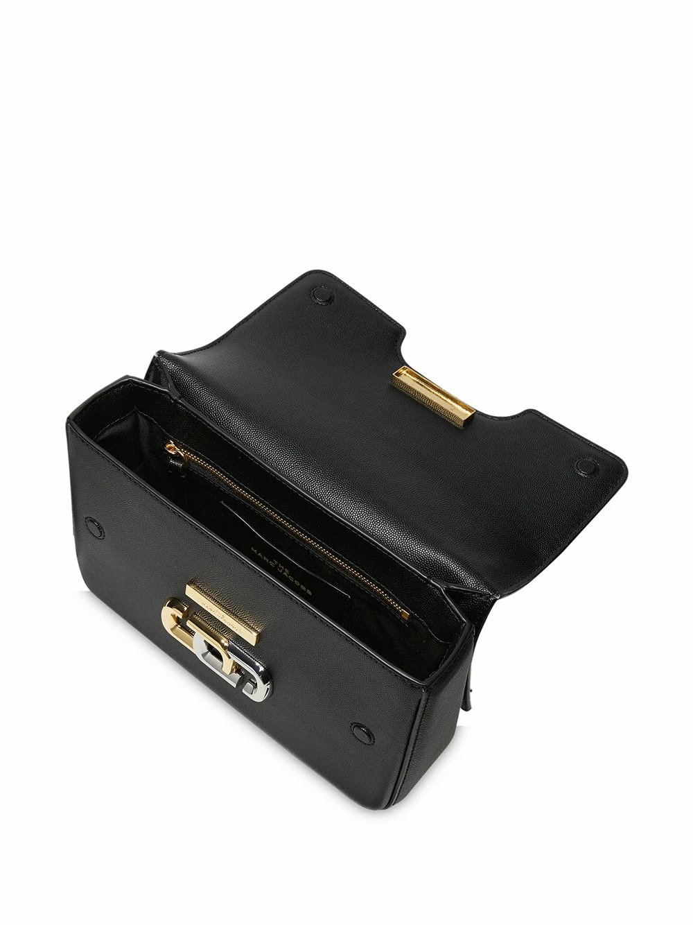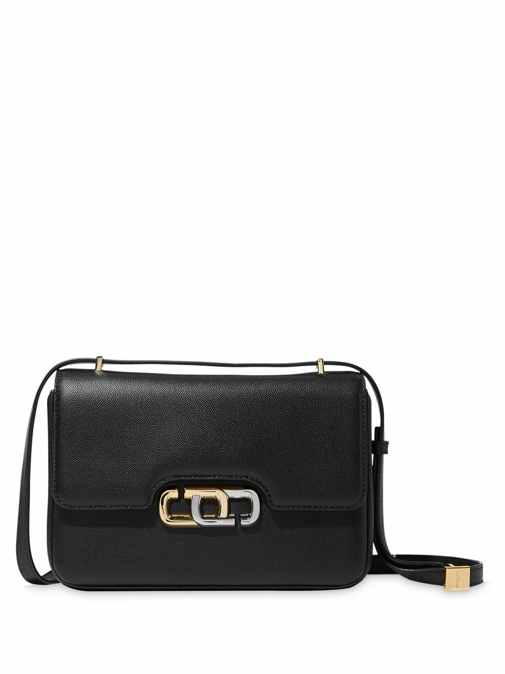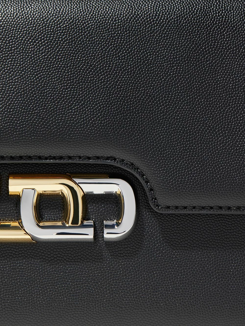 Finitions en métal doré, rabat sur le dessus à fermeture magnétique, bride portée épaule détachable, poche intérieure zippée. Couleur : noir. Matière : cuir.
