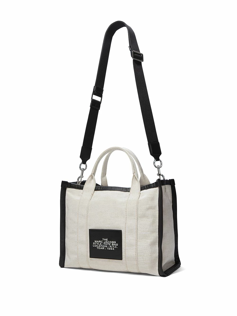 Bride portée épaule détachable et ajustable, fermeture zippée sur le dessus, imprimé monogrammé. Couleur : blanc.