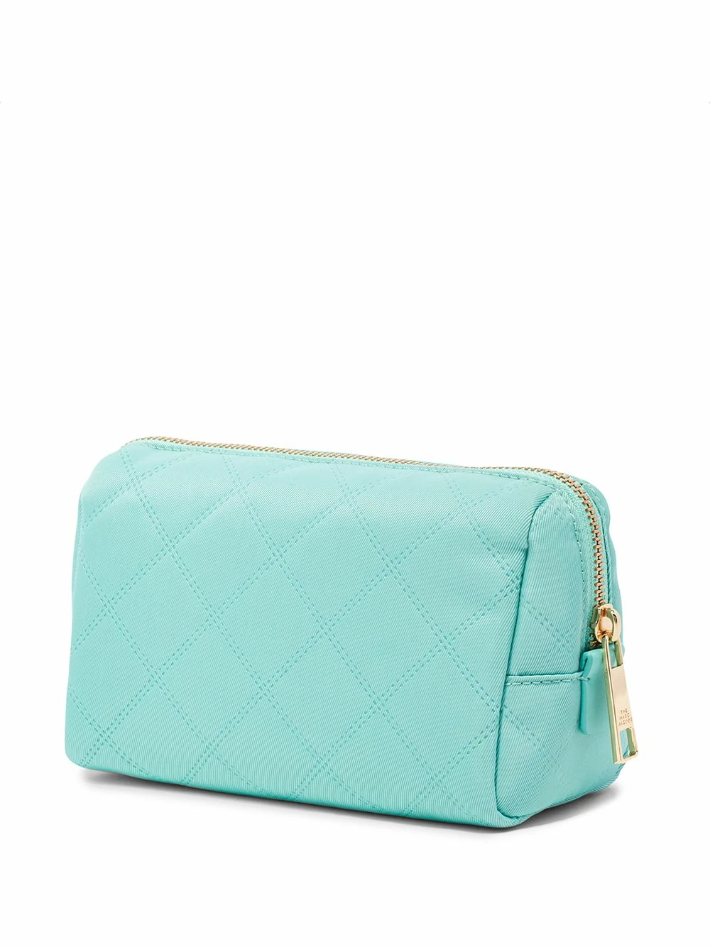 Matelassage à surpiqûres en losange, plaque logo dorée, finitions en métal doré, compartiment principal, fermeture zippée sur le dessus.
